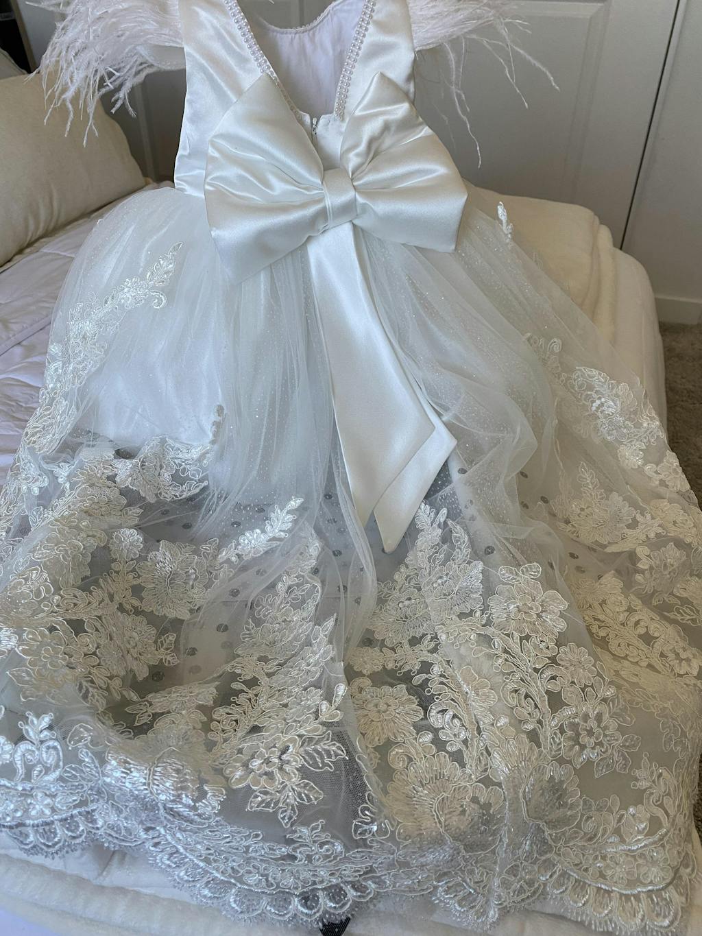 Such a beautiful dress. Excellent quality attention to detail and craftsmanship. My daughter was an angel for her big day. Thank you!
